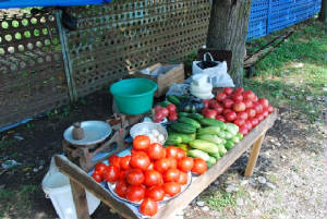 laugh and smile, then refuse payment. In one stand it got so funny: The women started loading us with bags full of fruits and pushing them into our hands