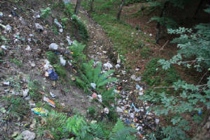 mountain road. However, all along the sides were covered with discarded garbage! Nothing but garbage